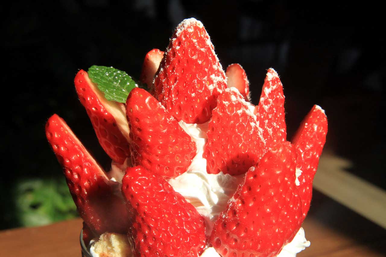 しかし、この「薄衣」は摘み取ったイチゴをその場で味わうのであれば、逆に農家にとって武器になります。そうです、このカフェのいちご狩り農園が直営しており、直接温室から運び入れているのです。