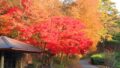 手入れが行き届いているのか、四季桜とモミジはほぼ同じ高さでそろえられています。まるで巨大な点描画です。とくに晴れた日は必見。モミジは立ち上がるようにくっきりとの浮かび上がり、えもいわれぬ美しさです。